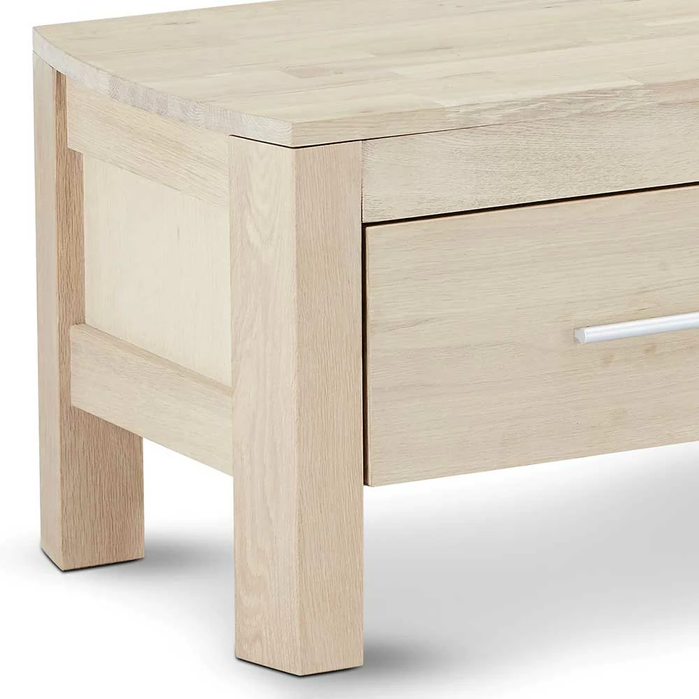 - Oberflächen weißlich geölt, Schubladenböden, Rückwand und Füllungen aus MDF mit Eiche Echtholz furniert