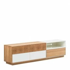 - Wohnliches TV-Lowboard in Eiche und Weiß