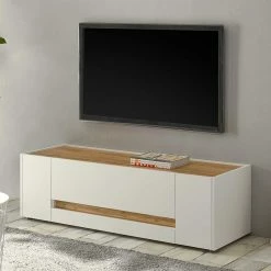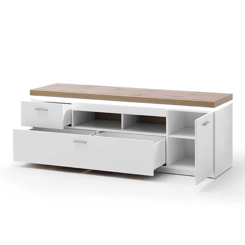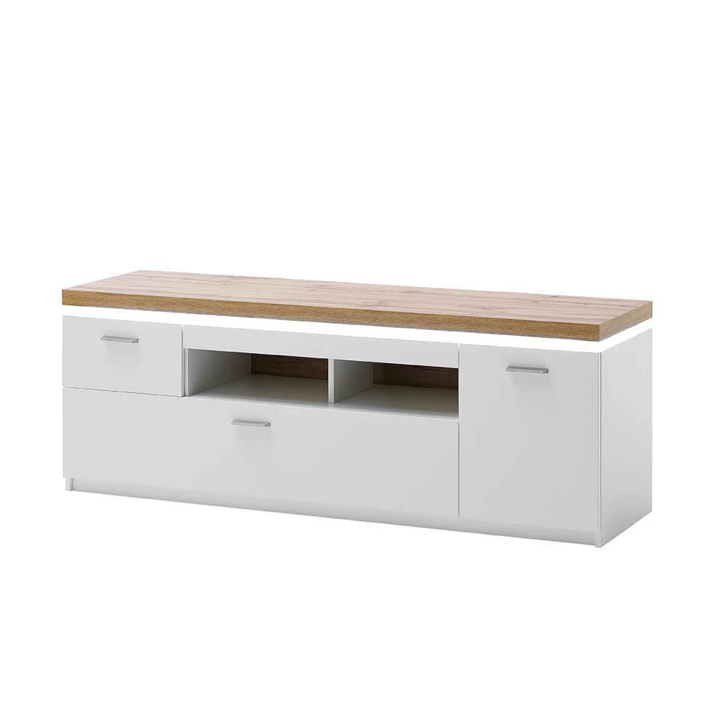 - Schlichtes TV-Board in Weiß und Wildeichefarben