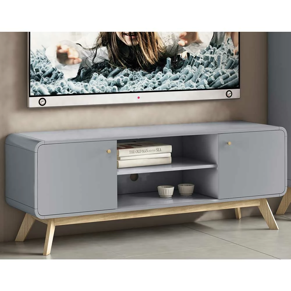 - Dekoratives TV Lowboard in Grau und Eichefarben