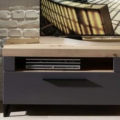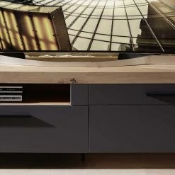 - GroĂźzĂĽgiges TV-Board in Dunkelgrau und Wildeichefarben