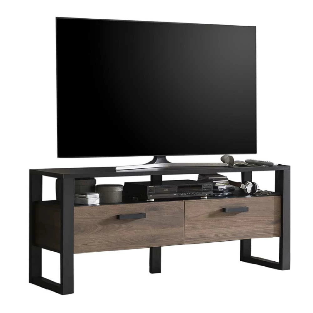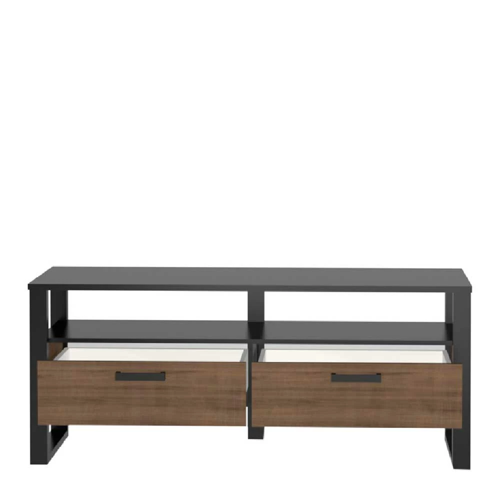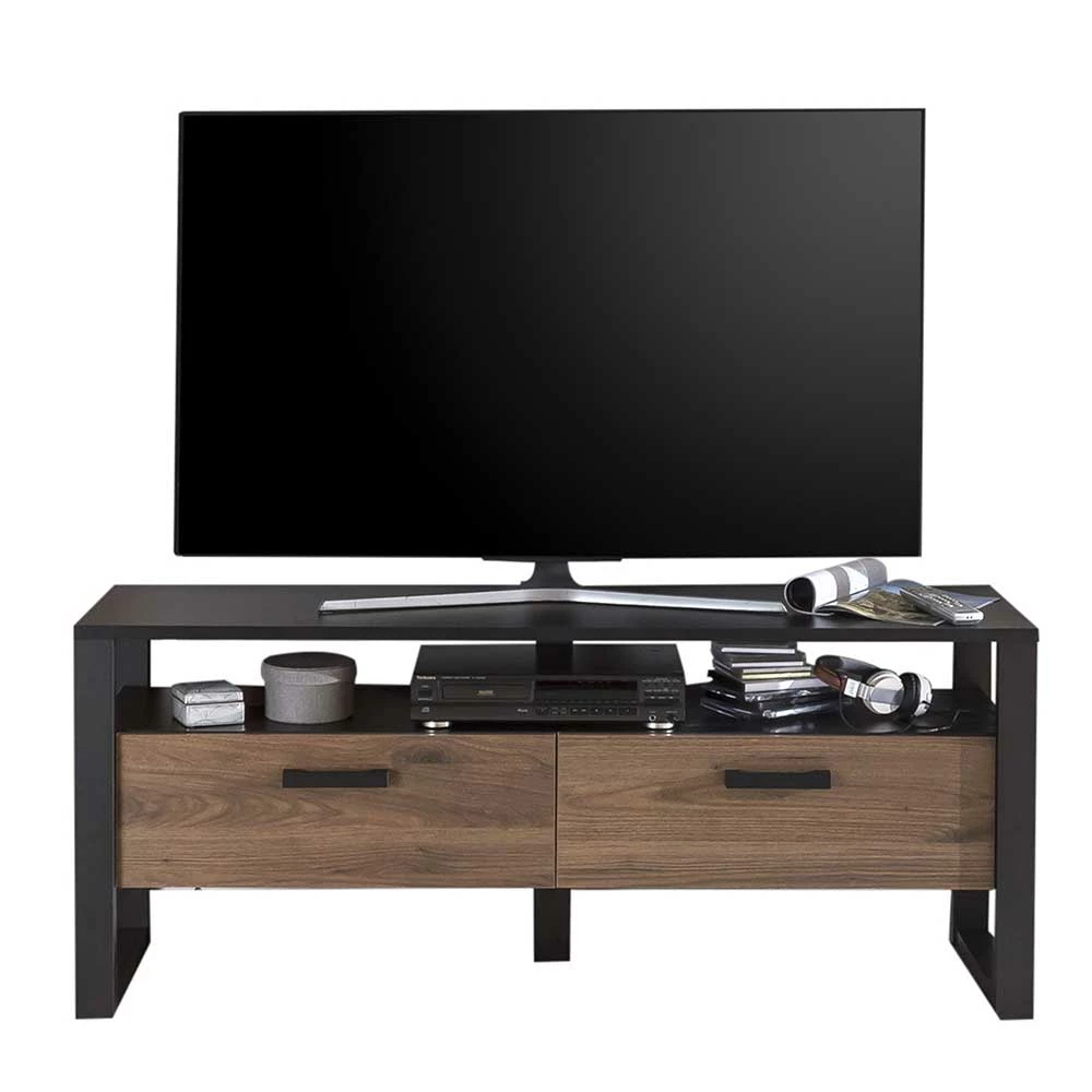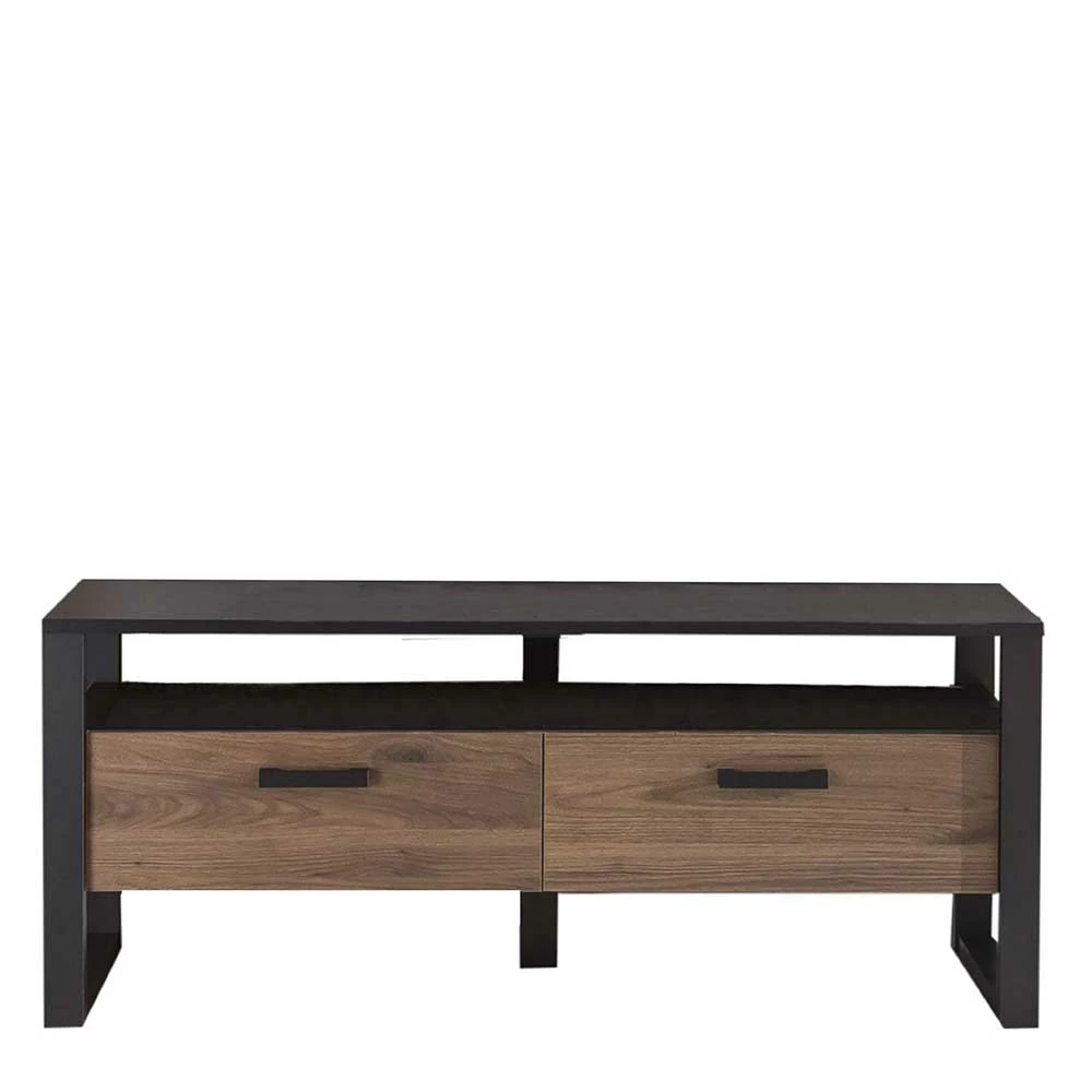 - Kompaktes TV Board in Nussbaumfarben und Schwarz