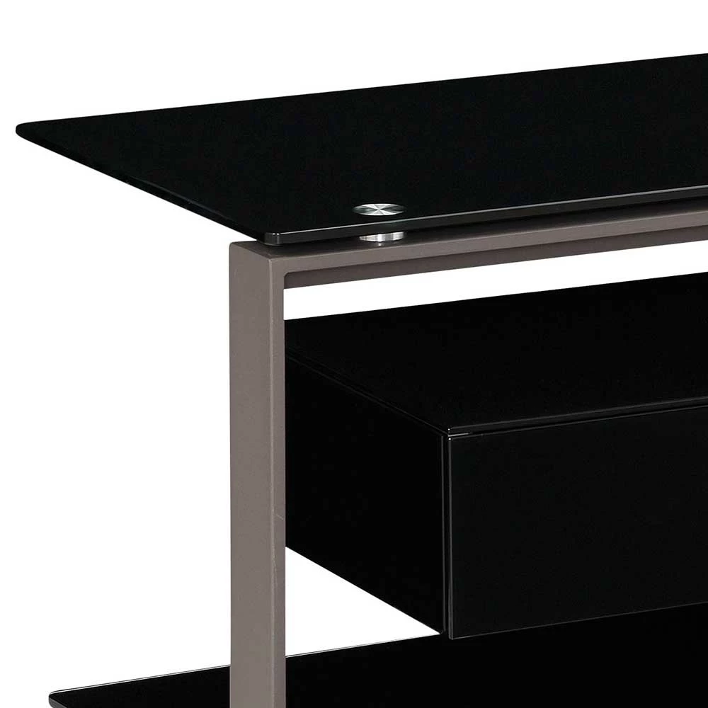 - Glasoberflächen in Schwarz lackiert, Rückwand und Rahmen aus Metall in Anthrazit pulverbeschichtet