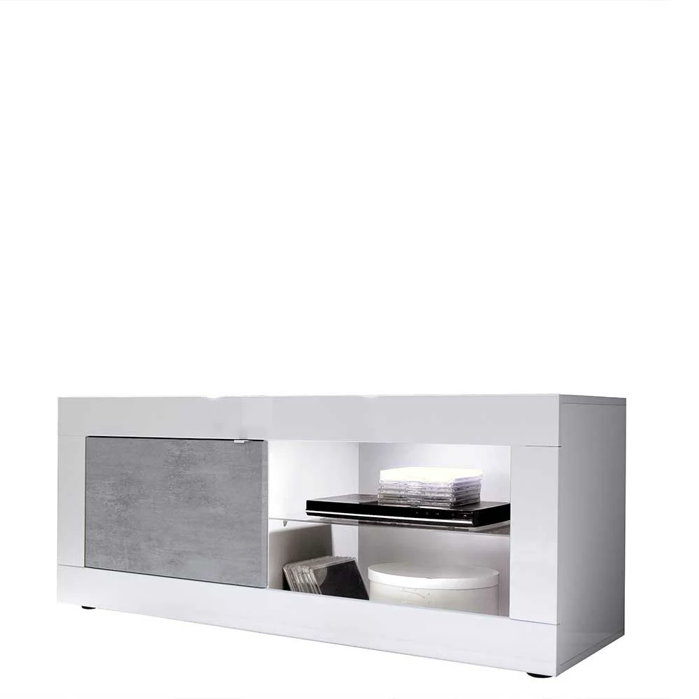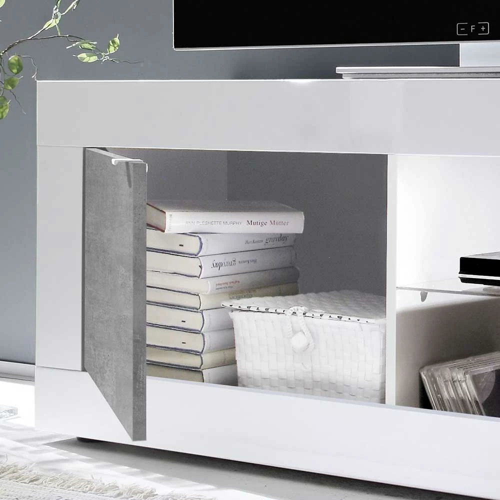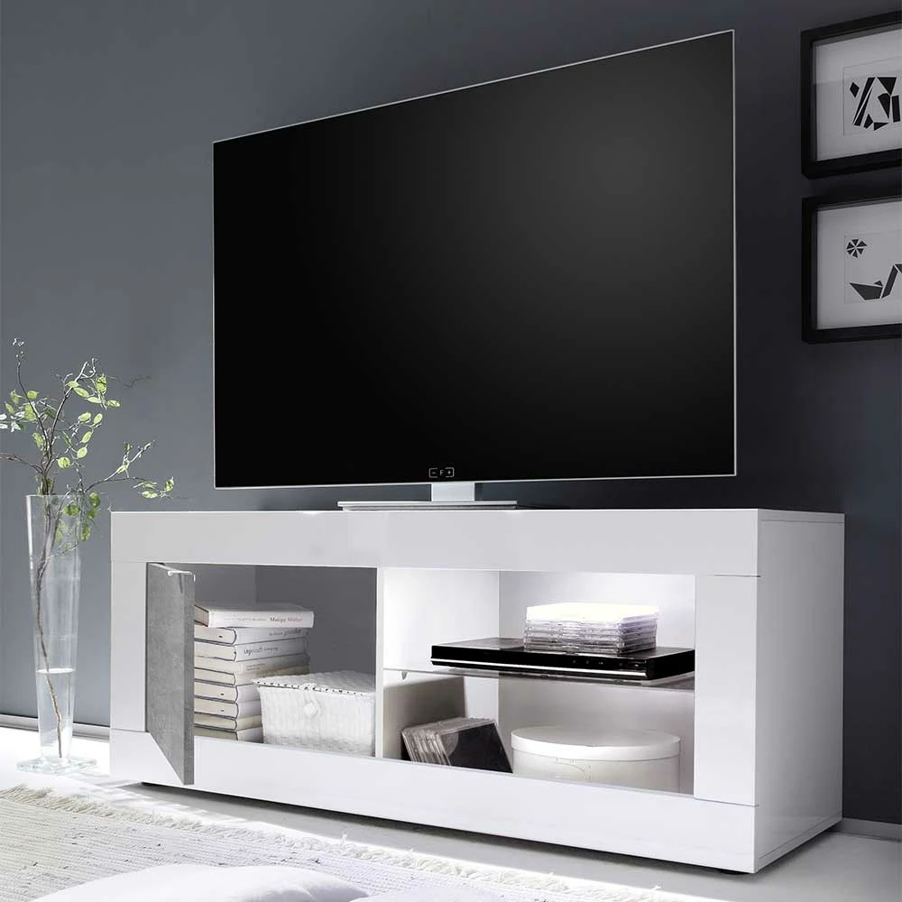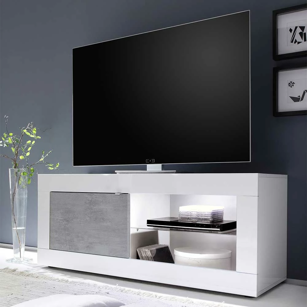 - Elegantes TV Board in Weiß und Beton Grau