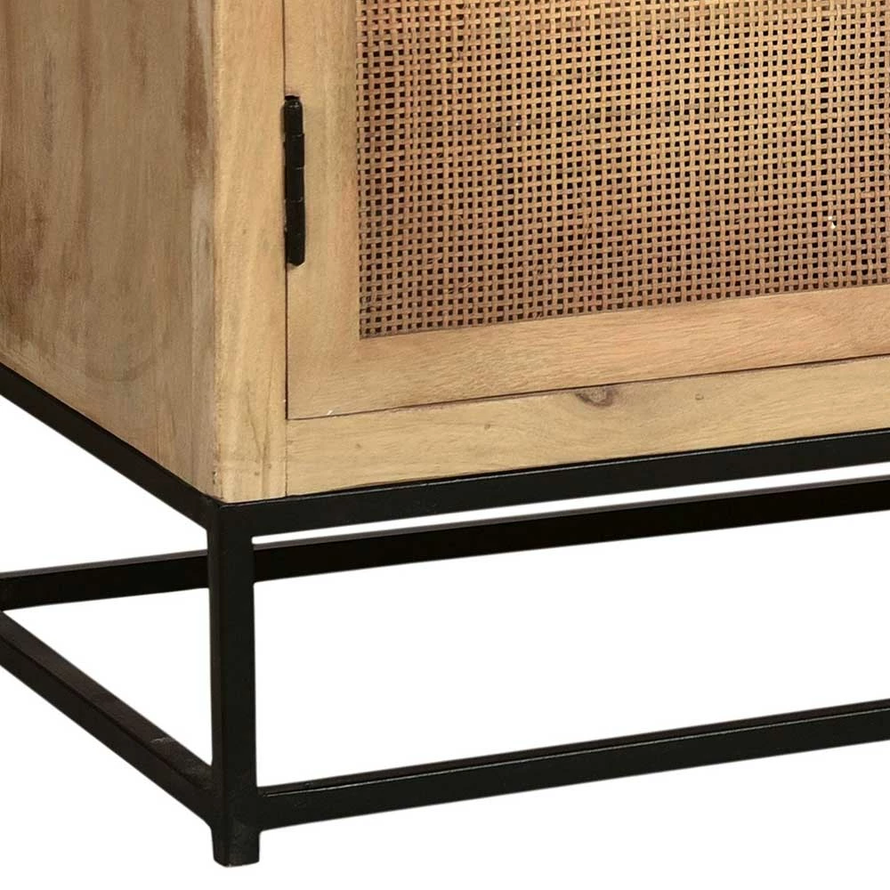 - Hergestellt aus Mangobaumholz, Metall und Rattan