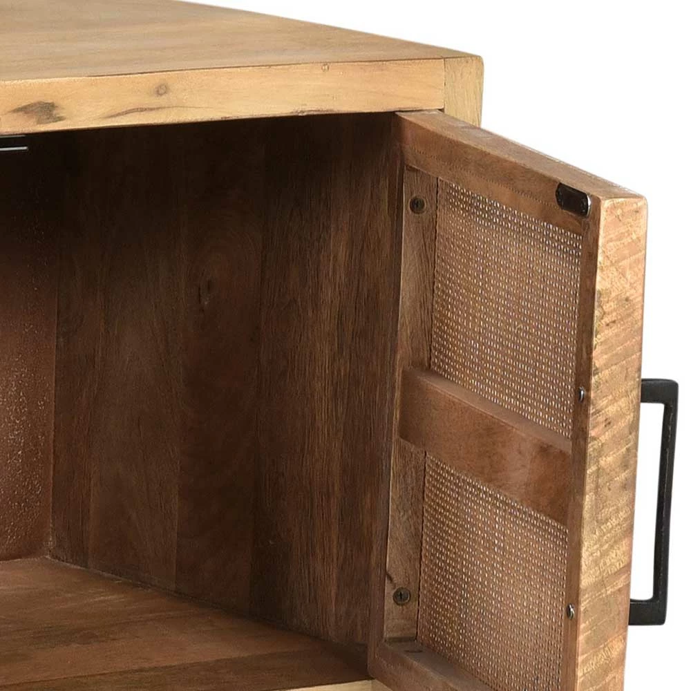- Ansprechendes TV-Board in Mangoholz Naturfarben und Schwarz