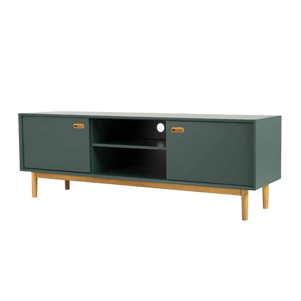 - Ausgezeichnetes TV-Board in Dunkelgrün und Eichefarben
