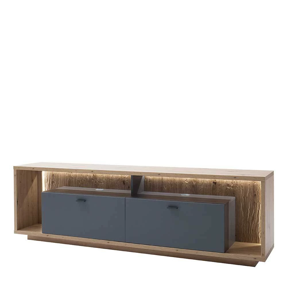 - Erstklassiges TV-Lowboard in Eichefarben und matt Grau