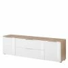 - Kontraststarkes TV-Board in Eichefarben und Weiß